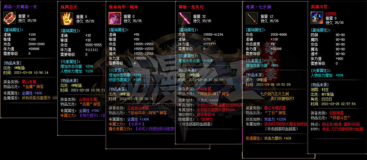 本服套装70套 散件专属3000多套 各种神装眼花缭乱 长期探索